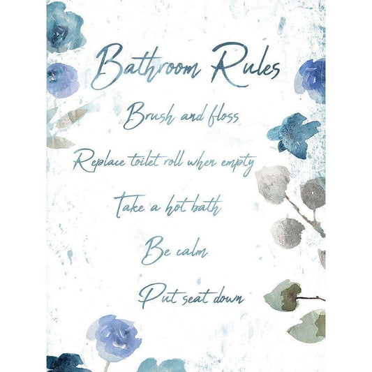 Floral Bathroom Rules Gold Ornate Wood Framed Art Print with Double Matting by Villa, Mlli