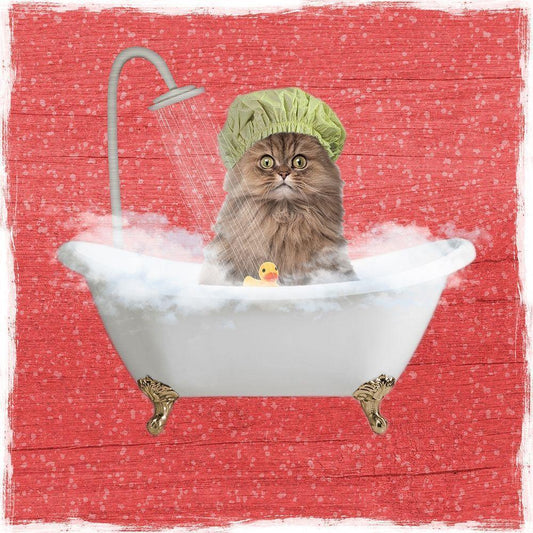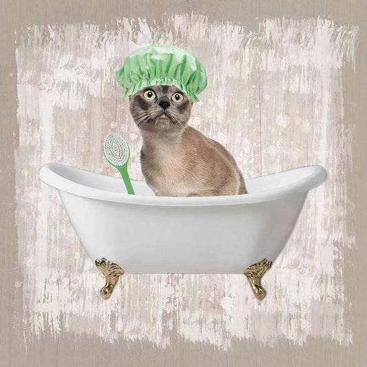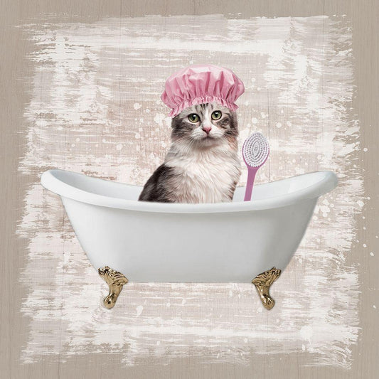 Fun Kitty Bath 1 Gold Ornate Wood Framed Art Print with Double Matting by Prime, Marcus