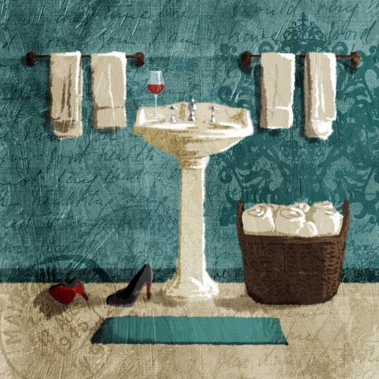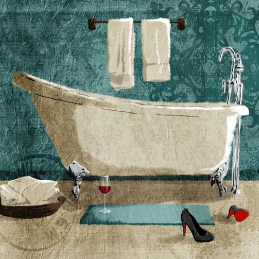 Teal Drink And Heals Bath Gold Ornate Wood Framed Art Print with Double Matting by Grey, Jace