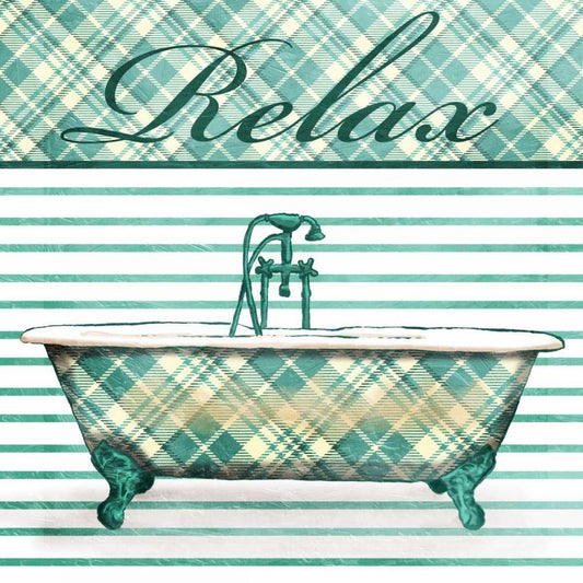 Relaxed Plaid Bath Gold Ornate Wood Framed Art Print with Double Matting by Grey, Jace