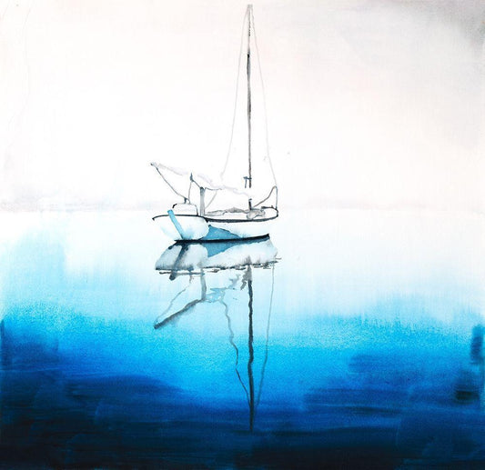 Sailing on the Lake White Modern Wood Framed Art Print with Double Matting by Atelier B Art Studio