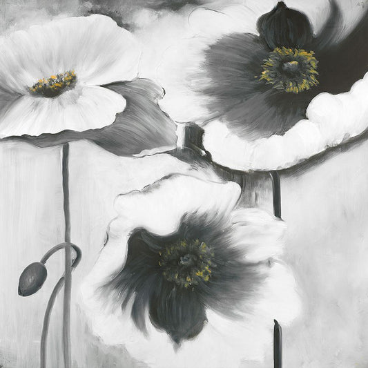 BLACK AND WHITE FLOWERS White Modern Wood Framed Art Print with Double Matting by Atelier B Art Studio