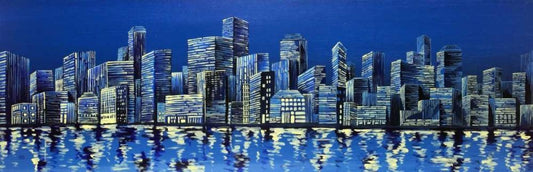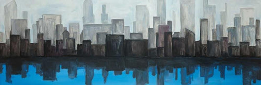 City in Blue White Modern Wood Framed Art Print with Double Matting by Atelier B Art Studio