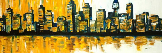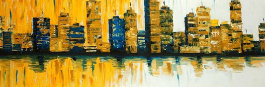 Yellow Watercolor Cityscape White Modern Wood Framed Art Print with Double Matting by Atelier B Art Studio