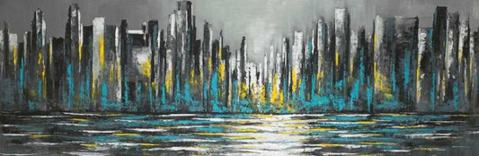 Colorful Skyline White Modern Wood Framed Art Print with Double Matting by Atelier B Art Studio
