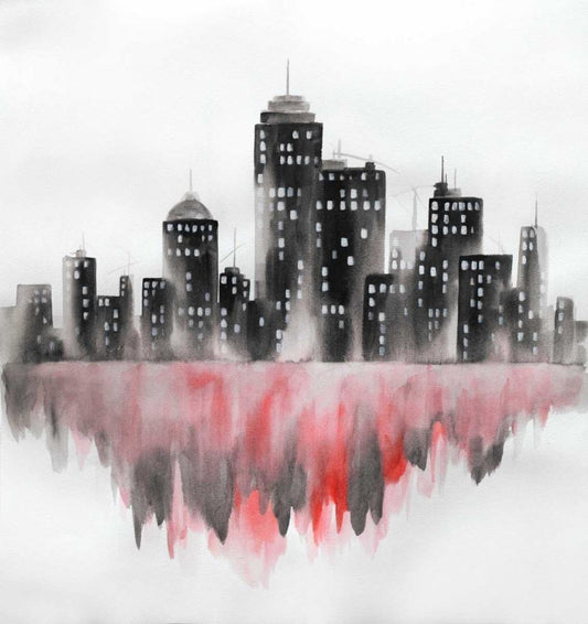 Red Watercolor Cityscape White Modern Wood Framed Art Print with Double Matting by Atelier B Art Studio