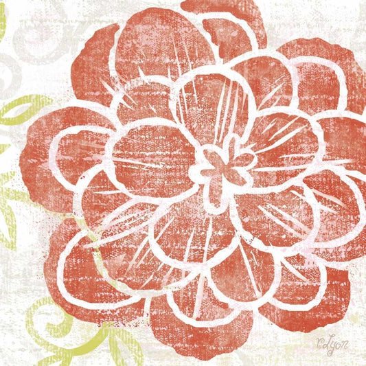 Red and Yellow Poppy Damask I White Modern Wood Framed Art Print with Double Matting by Milan, Vittorio