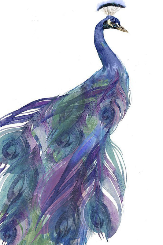 Peacock Dance White Modern Wood Framed Art Print with Double Matting by Sommers, Mindy
