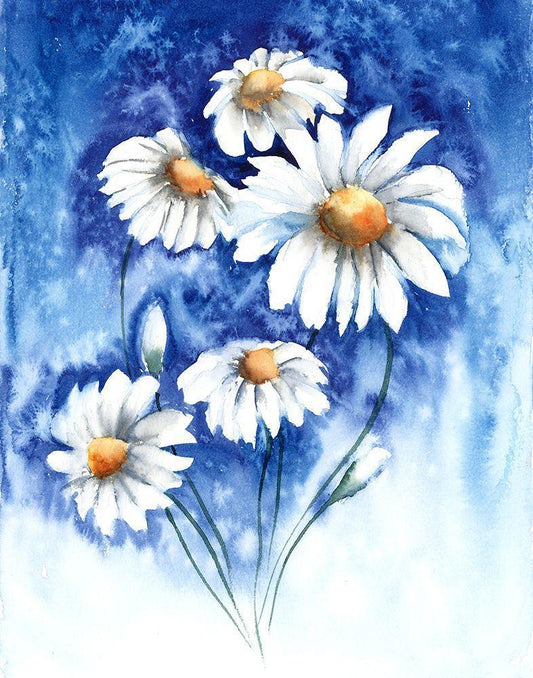 Daisies White Modern Wood Framed Art Print with Double Matting by Shefranov, Olga