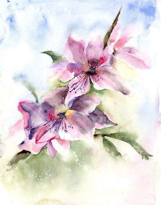 Purple Blossoms White Modern Wood Framed Art Print with Double Matting by Shefranov, Olga
