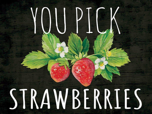 You Pick Strawberries White Modern Wood Framed Art Print with Double Matting by ND Art