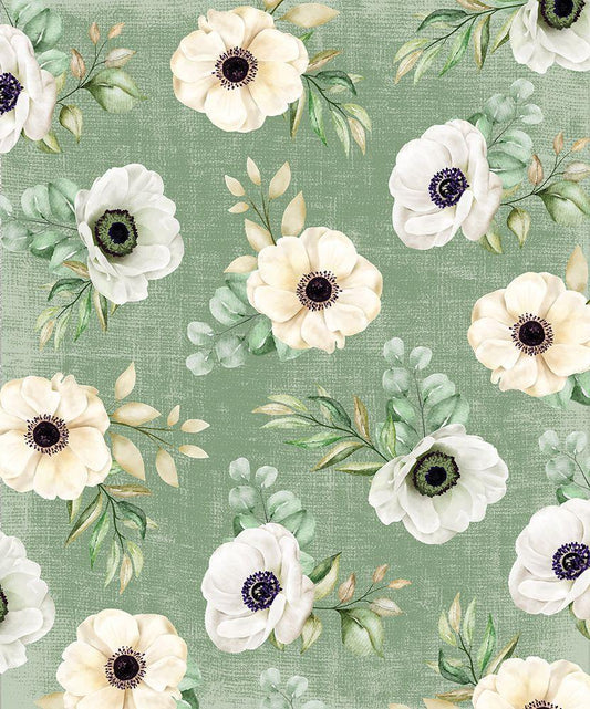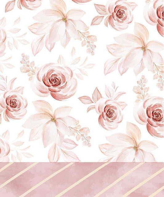 Wedding Flower Pattern White Modern Wood Framed Art Print with Double Matting by ND Art