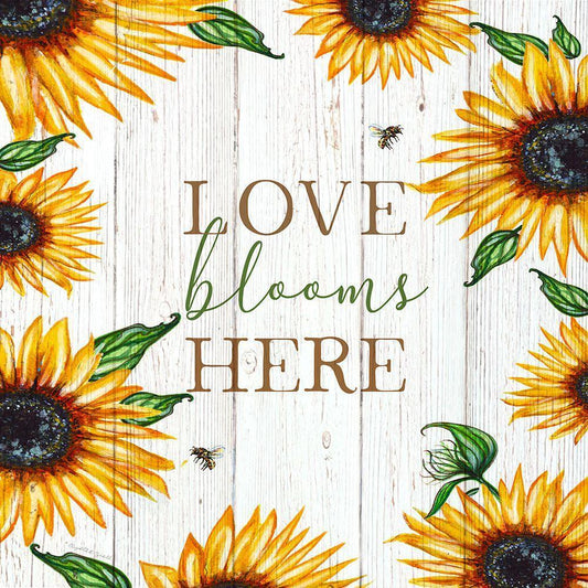 Love Blooms Here White Modern Wood Framed Art Print with Double Matting by Tyndall, Elizabeth