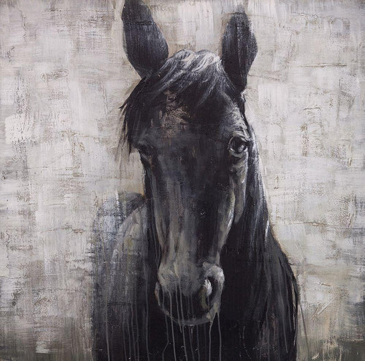 BLACK HORSE White Modern Wood Framed Art Print with Double Matting by Atelier B Art Studio