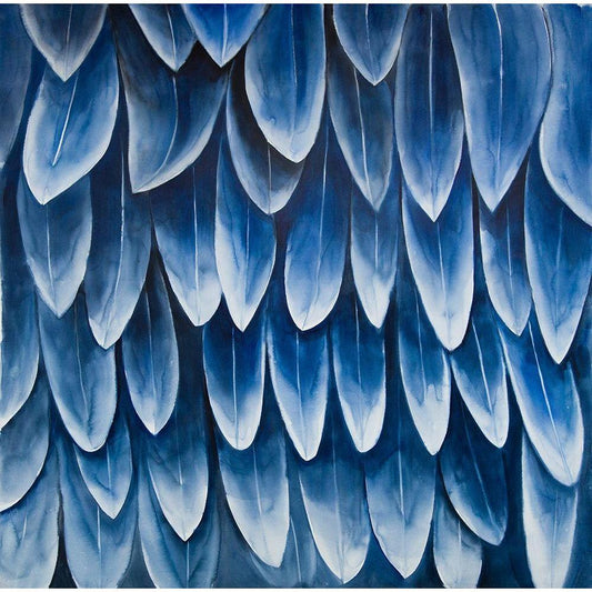 PLUMAGE BLUE Black Modern Wood Framed Art Print with Double Matting by Atelier B Art Studio