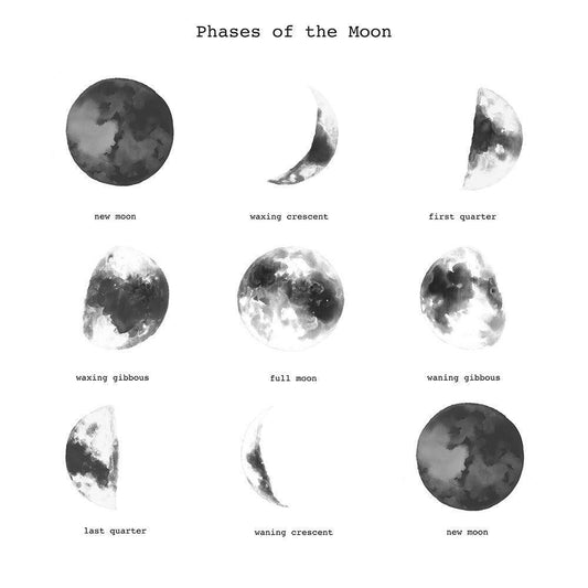 PHASES OF THE MOON White Modern Wood Framed Art Print with Double Matting by Atelier B Art Studio