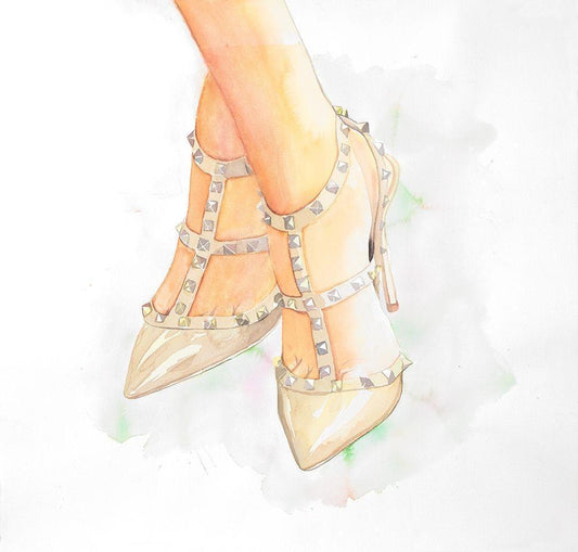 STUDDED HIGH HEELS White Modern Wood Framed Art Print with Double Matting by Atelier B Art Studio