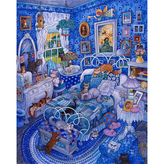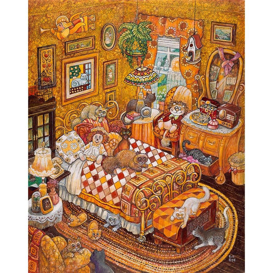 Patchwork Cats Black Modern Wood Framed Art Print with Double Matting by Bell, Bill