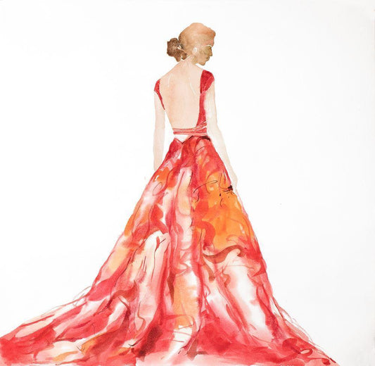 BEAUTIFUL RED PROM DRESS White Modern Wood Framed Art Print with Double Matting by Atelier B Art Studio