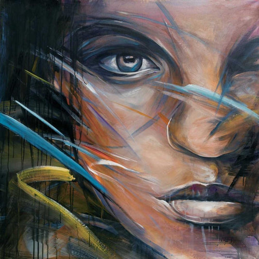 Colorful Woman Face White Modern Wood Framed Art Print with Double Matting by Atelier B Art Studio