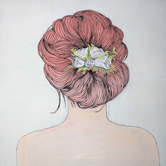 WOMAN FROM BEHIND WITH FLOWERS White Modern Wood Framed Art Print with Double Matting by Atelier B Art Studio