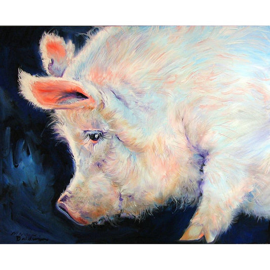 My Pink Pig White Modern Wood Framed Art Print by Baldwin, Marcia