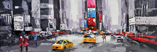 ABSTRACT STREET WITH YELLOW TAXIS White Modern Wood Framed Art Print with Double Matting by Atelier B Art Studio