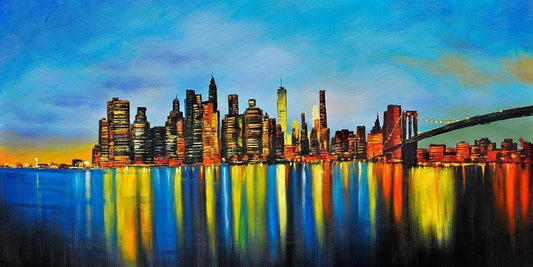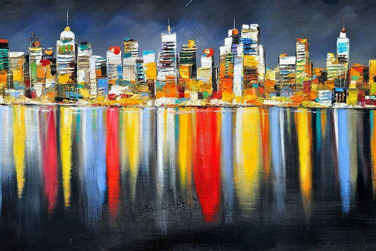 COLORFUL REFLECTION OF A CITYSCAPE BY NIGHT White Modern Wood Framed Art Print with Double Matting by Atelier B Art Studio