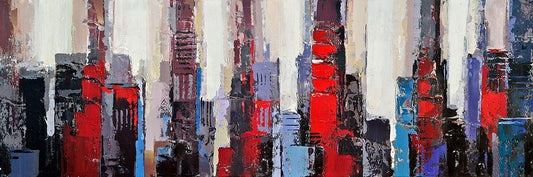 ABSTRACT RED AND BLUE BUILDINGS White Modern Wood Framed Art Print with Double Matting by Atelier B Art Studio