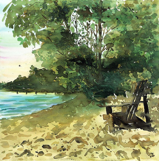 DAY AT THE LAKE White Modern Wood Framed Art Print with Double Matting by Atelier B Art Studio