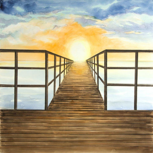 Sunset on the Brooklyn Bridge White Modern Wood Framed Art Print with Double Matting by Atelier B Art Studio