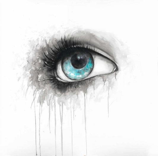 Blue Eye in Watercolor White Modern Wood Framed Art Print with Double Matting by Atelier B Art Studio