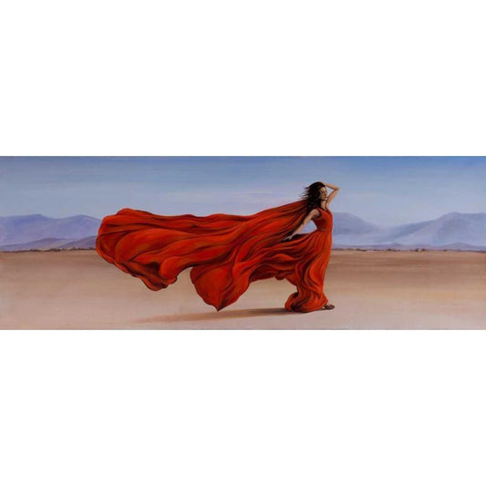 Woman Red Dress in the Desert Gold Ornate Wood Framed Art Print with Double Matting by Atelier B Art Studio