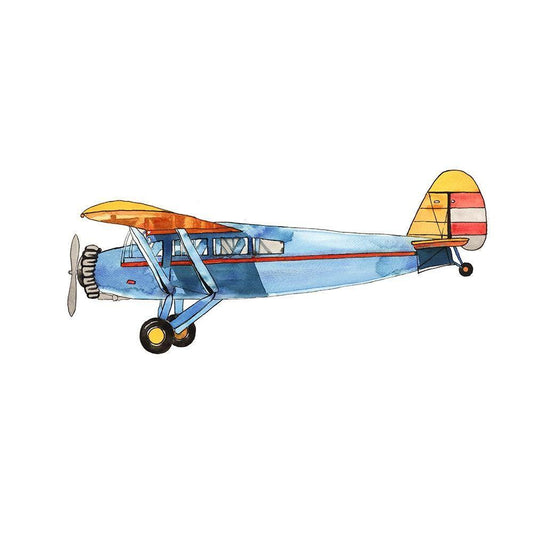 SMALL BLUE PLANE White Modern Wood Framed Art Print with Double Matting by Atelier B Art Studio