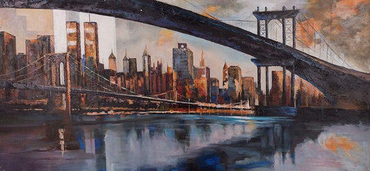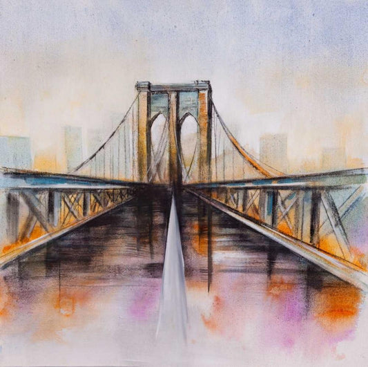 Colorfull Brooklyn Bridge White Modern Wood Framed Art Print with Double Matting by Atelier B Art Studio