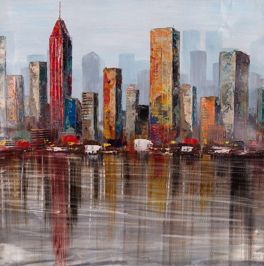 Skyline on Abstract Cityscape White Modern Wood Framed Art Print with Double Matting by Atelier B Art Studio