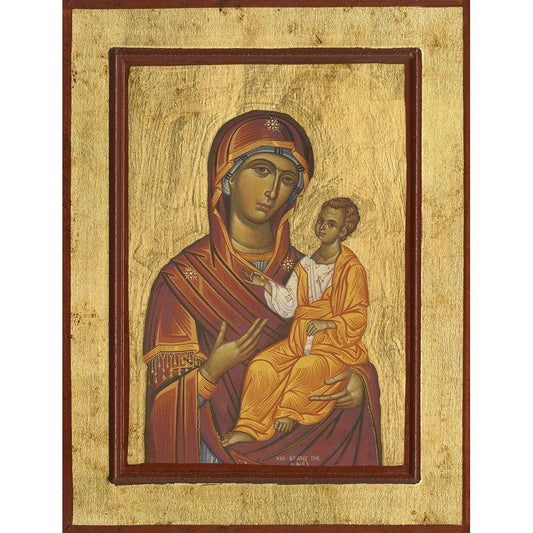 Byzantine Icon Haloed Virgin Mary with Baby Jesus Black Modern Wood Framed Art Print by anonymous