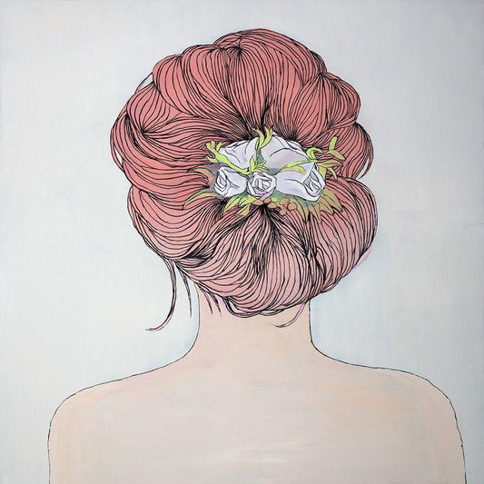 WOMAN FROM BEHIND WITH FLOWERS Black Modern Wood Framed Art Print by Atelier B Art Studio