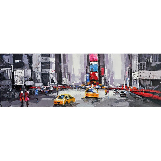 ABSTRACT STREET WITH YELLOW TAXIS Black Modern Wood Framed Art Print by Atelier B Art Studio