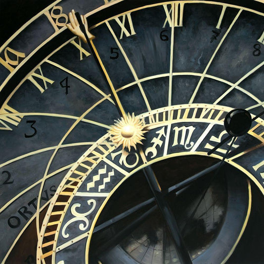 ASTROLOGIC CLOCK Black Modern Wood Framed Art Print by Atelier B Art Studio