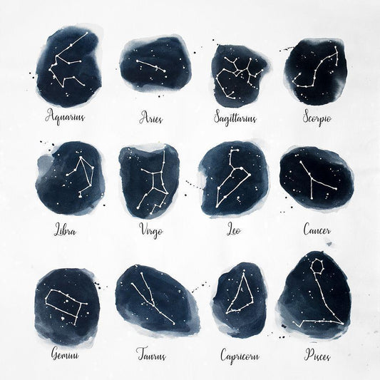 CONSTELLATIONS ZODIAC SIGN Black Modern Wood Framed Art Print by Atelier B Art Studio