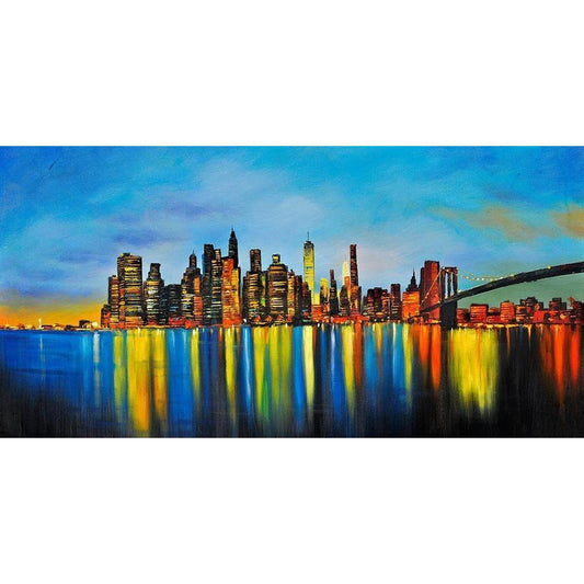 COLORFUL REFLECTION OF A CITYSCAPE BY NIGHT Black Modern Wood Framed Art Print by Atelier B Art Studio