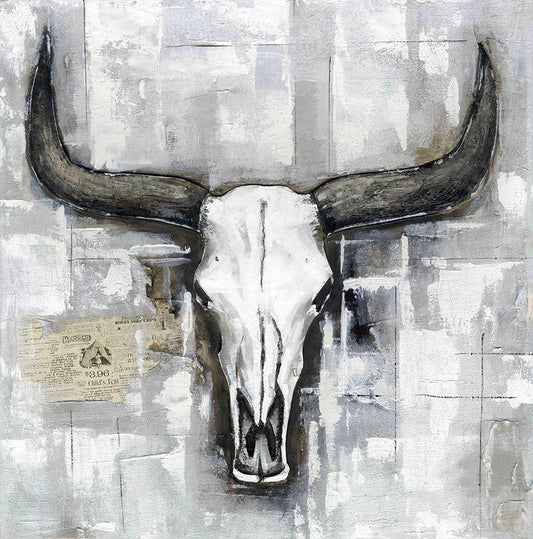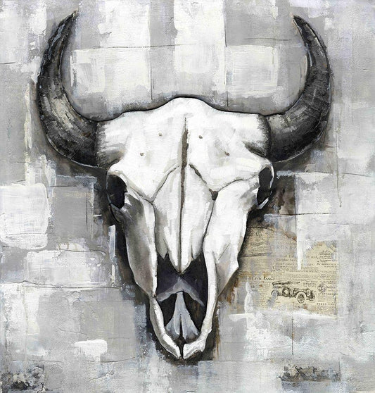 INDUSTRIAL STYLE BULL SKULL White Modern Wood Framed Art Print with Double Matting by Atelier B Art Studio