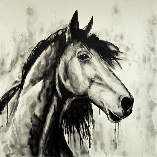 SPIRIT HORSE White Modern Wood Framed Art Print with Double Matting by Atelier B Art Studio
