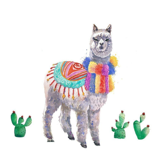 TRADITIONAL PERUVIAN LAMA White Modern Wood Framed Art Print with Double Matting by Atelier B Art Studio