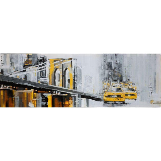 YELLOW BROOKLYN BRIDGE WITH TAXIS Black Modern Wood Framed Art Print by Atelier B Art Studio