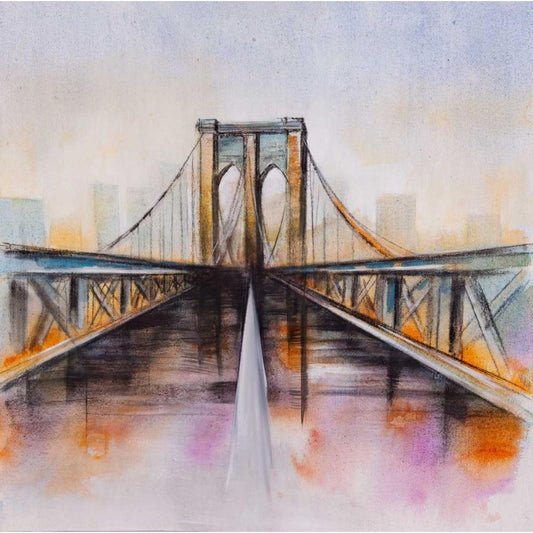 Colorfull Brooklyn Bridge Black Modern Wood Framed Art Print by Atelier B Art Studio