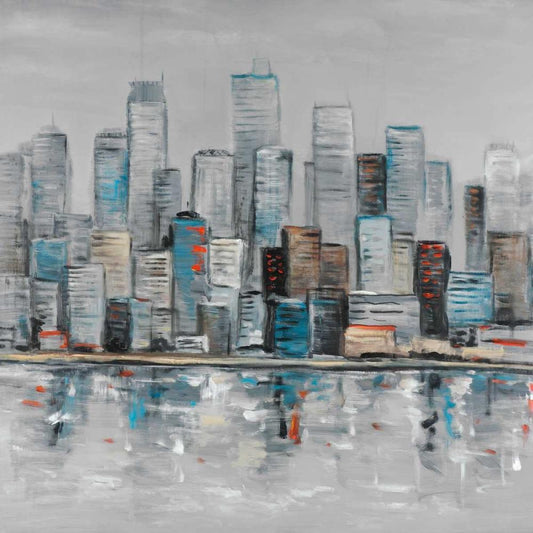Abstract Urban Skyline Black Modern Wood Framed Art Print by Atelier B Art Studio