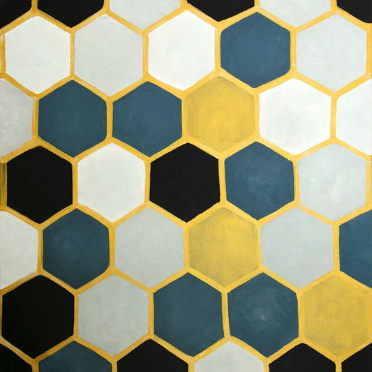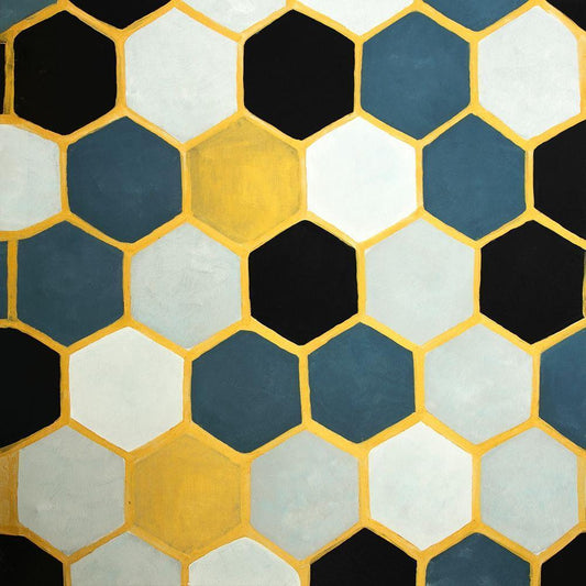 BLUE AND GOLD CELLS Black Modern Wood Framed Art Print by Atelier B Art Studio
