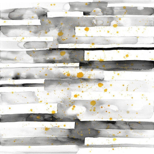 BLACK STRIPES WITH GOLD SPLASH Black Modern Wood Framed Art Print by Atelier B Art Studio